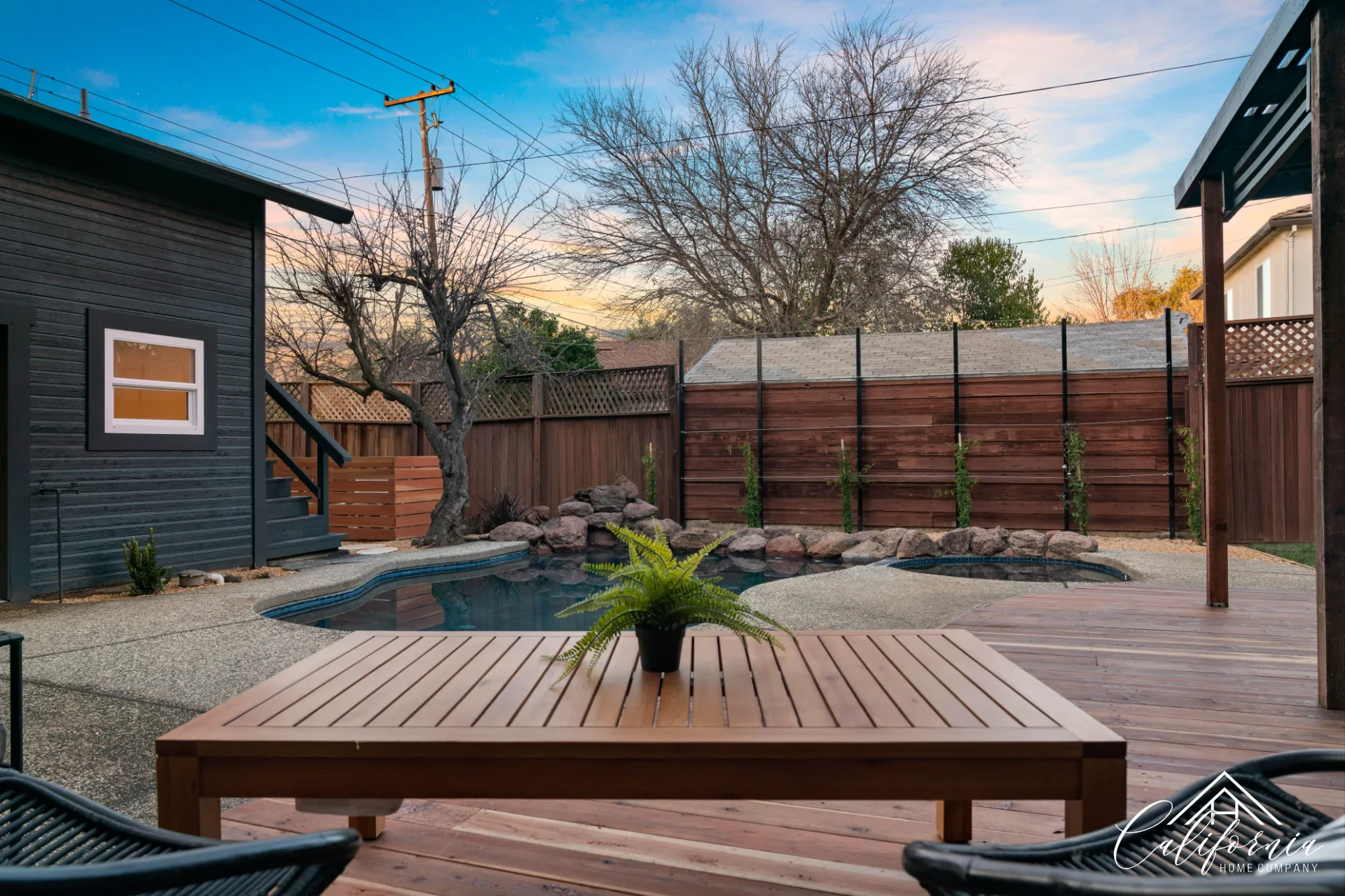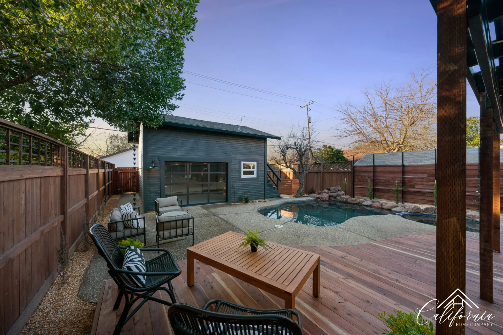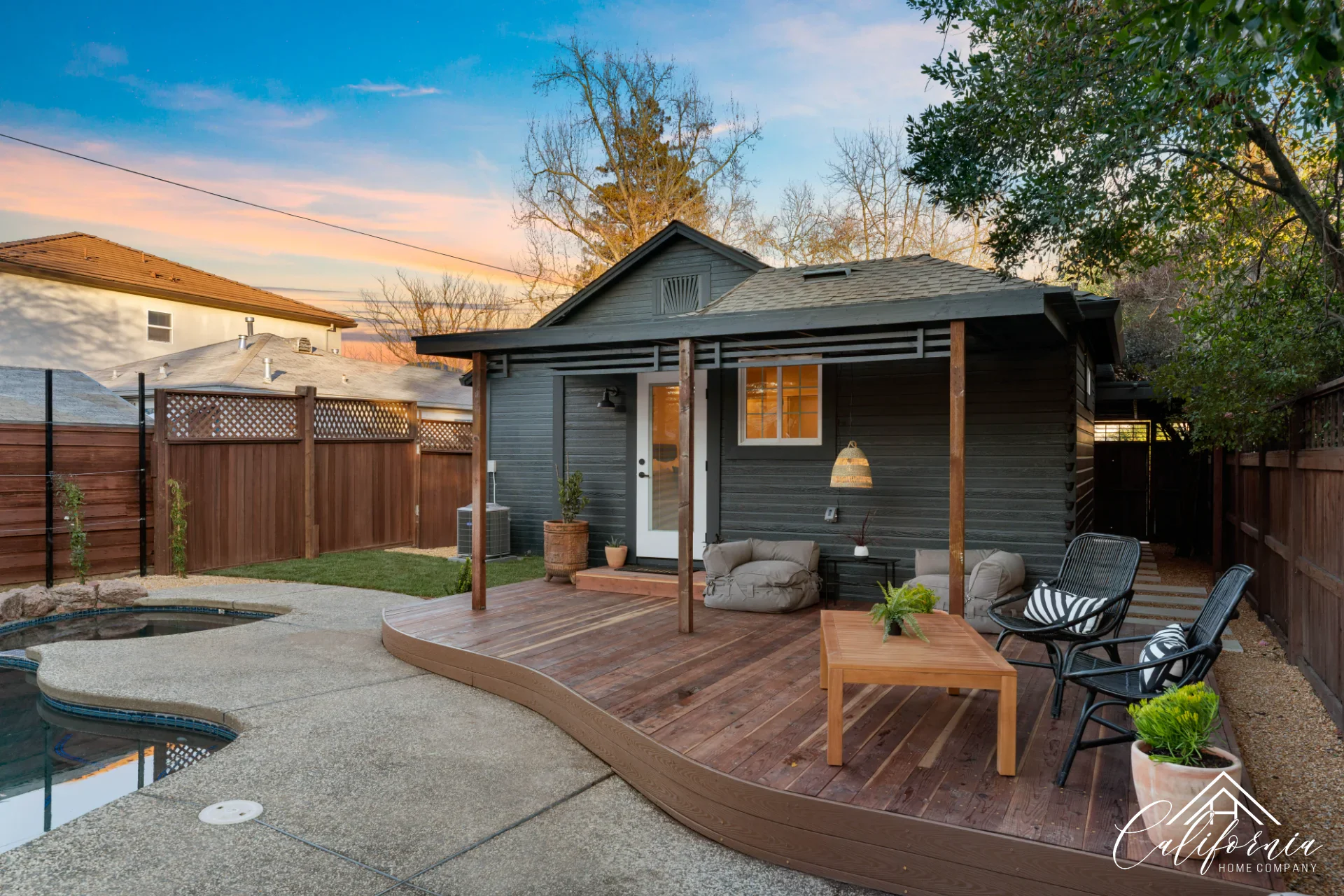 This beautifully renovated home sits in the heart of East Sacramento, just steps away from parks, local shops, and cozy cafés. Thoughtfully updated with custom interior design and high-end finishes, the home features 3 spacious bedrooms and 2 bathrooms across 1,081 square feet of bright, open living space. Enjoy outdoor living with a pool, outdoor shower, and a covered redwood deck perfect for entertaining. The fully landscaped front and back yards add to the home’s charm, while the detached garage includes a bathroom and kitchenette—ideal as a guest suite or bonus space. A rare gem in one of Sacramento’s most desirable neighborhoods.