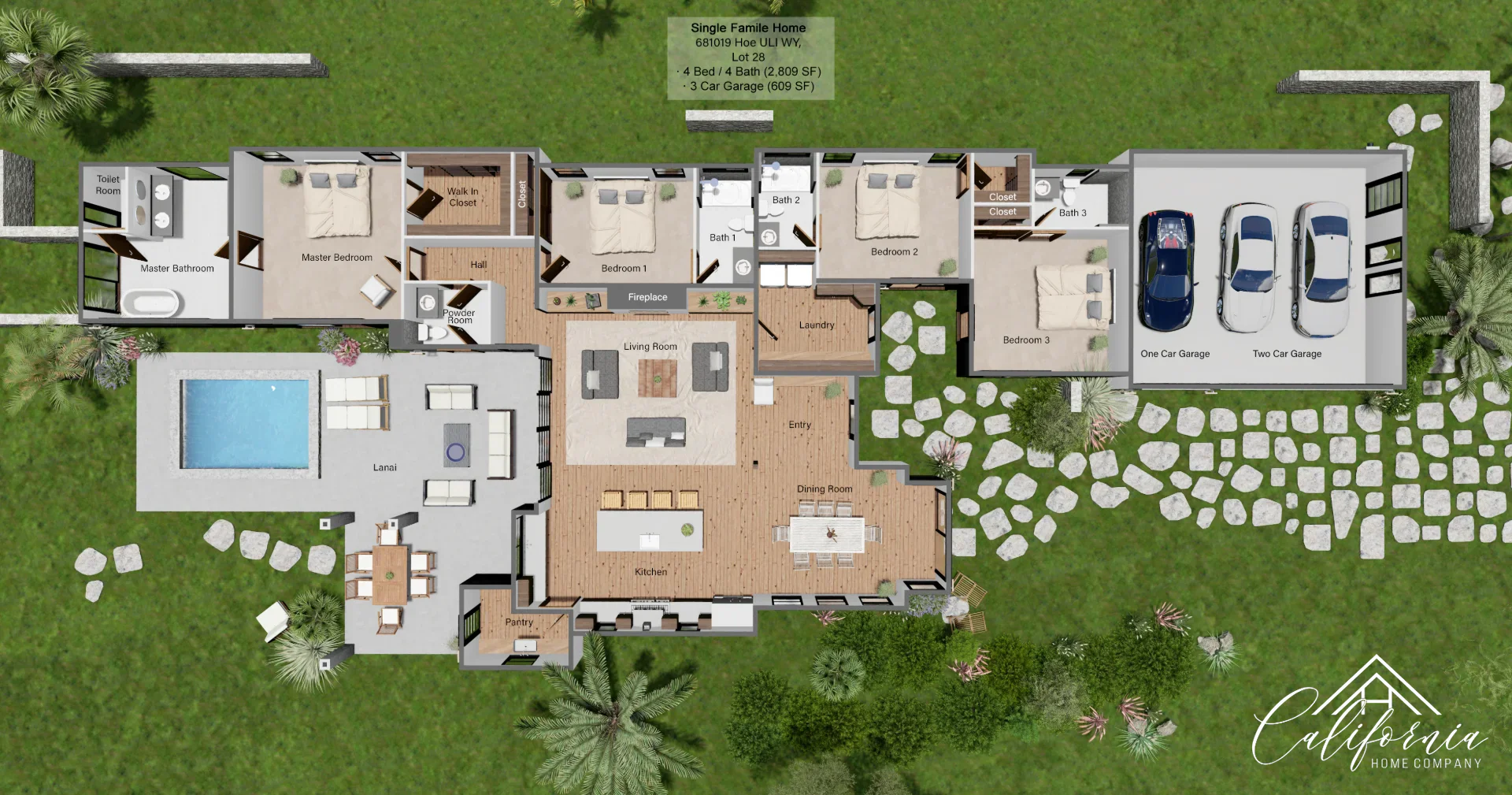 Welcome to your private island retreat. This stunning, single-story home blends contemporary island architecture with natural textures and open, airy design. Nestled among swaying palms and lush tropical landscaping, the home features warm wood accents, stone finishes, and large sliding glass doors that blur the line between indoor and outdoor living. The spacious open-concept layout offers seamless flow from the living and dining areas to the covered lanai—perfect for entertaining or simply enjoying Hawaii’s gentle breezes and year-round sunshine. With thoughtfully designed bedrooms, spa-inspired bathrooms, and a modern kitchen featuring high-end finishes, this home is both elegant and incredibly comfortable. Whether it’s morning coffee overlooking the garden or sunset gatherings under the palm trees, this is island living at its best—peaceful, stylish, and made for relaxation.