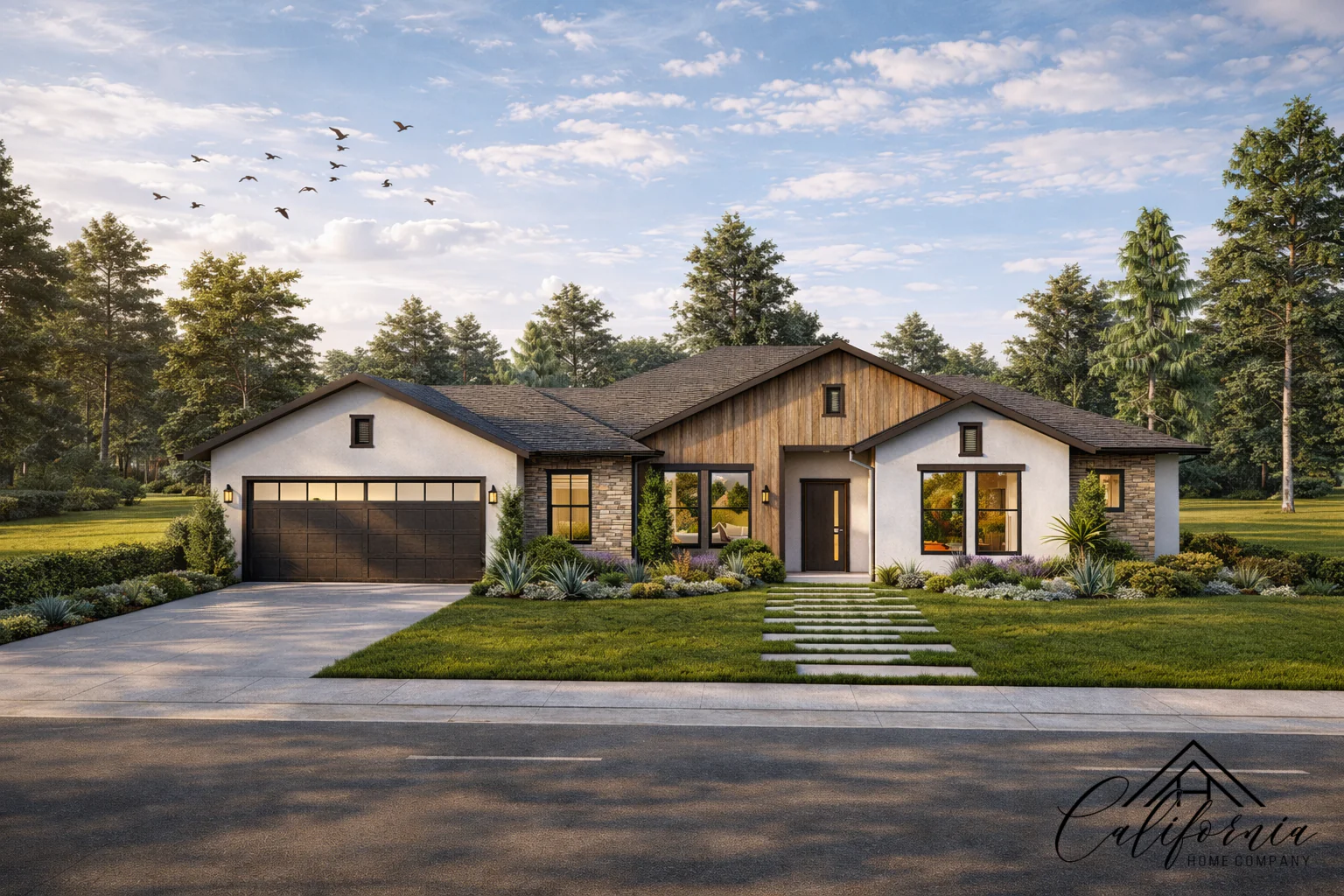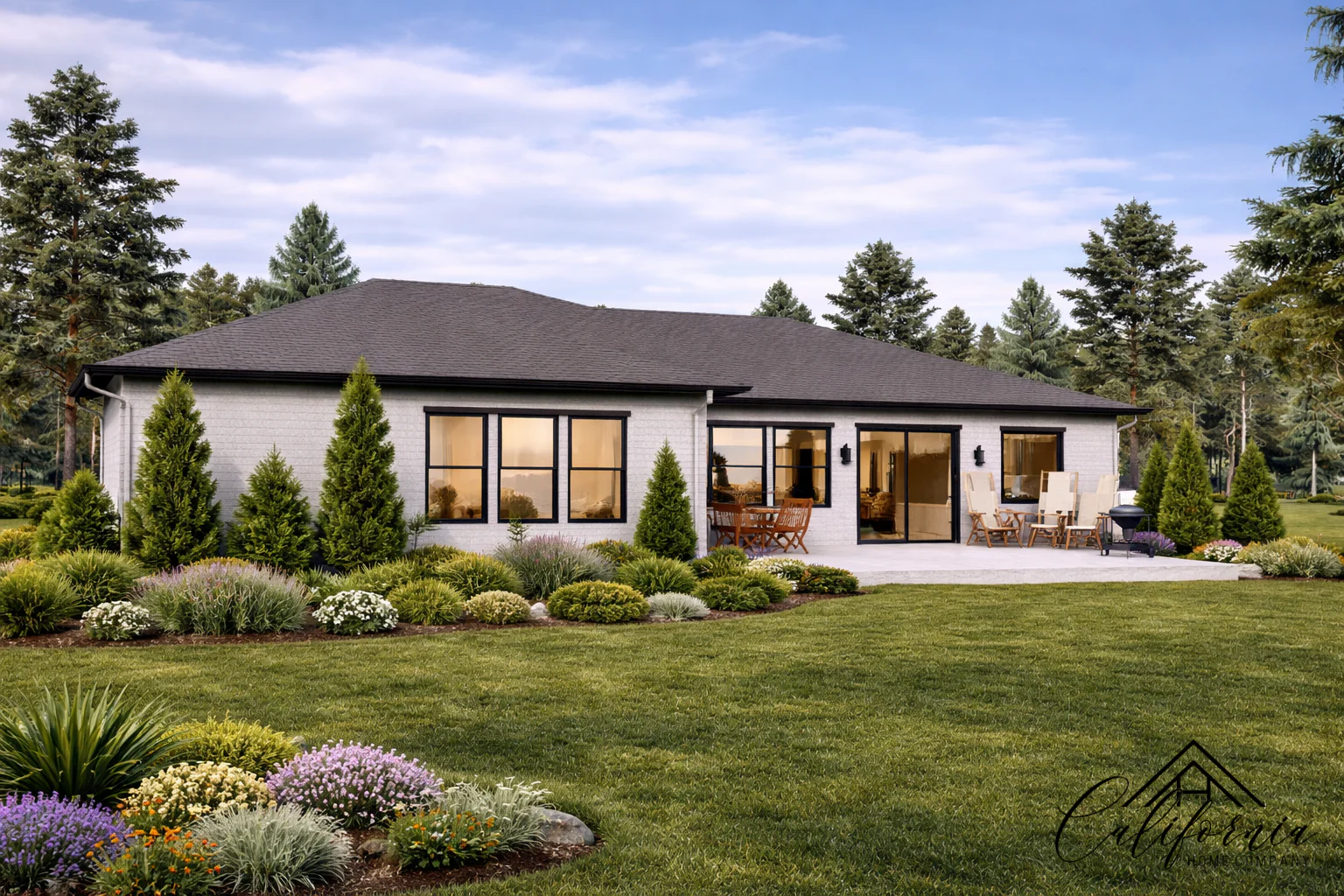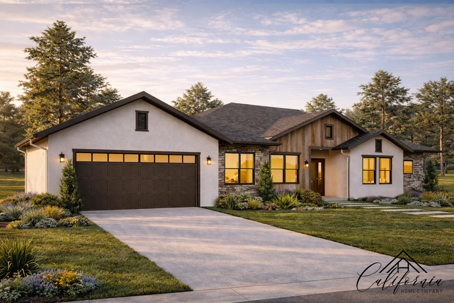 Beautiful and thoughtfully crafted, this 4-bedroom, 3-bathroom residence is nestled in a peaceful, green enclave—offering a quiet retreat without sacrificing modern comforts. With a spacious living area of 2,788 sq ft on a generous 42,974 sq ft lot, and a 2-car garage, the home effortlessly combines function, elegance, and nature. Designed with both style and safety in mind, the home features exterior walls made of fire-resistant materials, ember-protected vents, and tempered-glass windows—meeting the highest standards for durability and protection. The soft, earthy textures of the facade, paired with clean architectural lines and dark-framed windows, create a timeless, elevated look. Inside, expansive windows and an open floor plan flood the interiors with natural light, bringing the surrounding landscape indoors. Whether gathering with family or enjoying a quiet moment, every space feels warm, balanced, and connected to nature. This is a home built for lasting comfort—where refined design meets peace of mind.