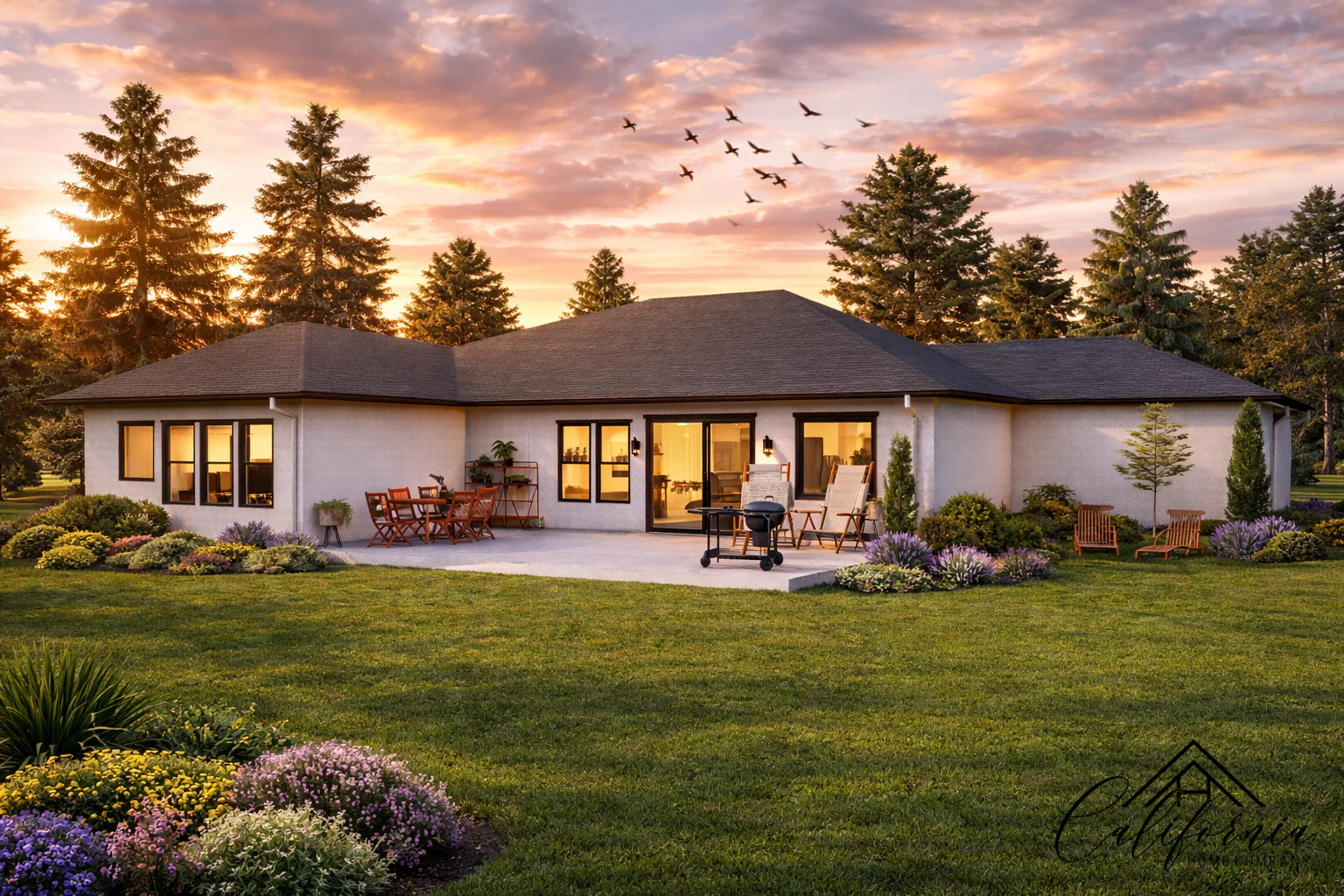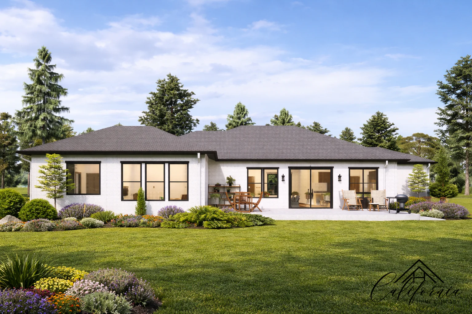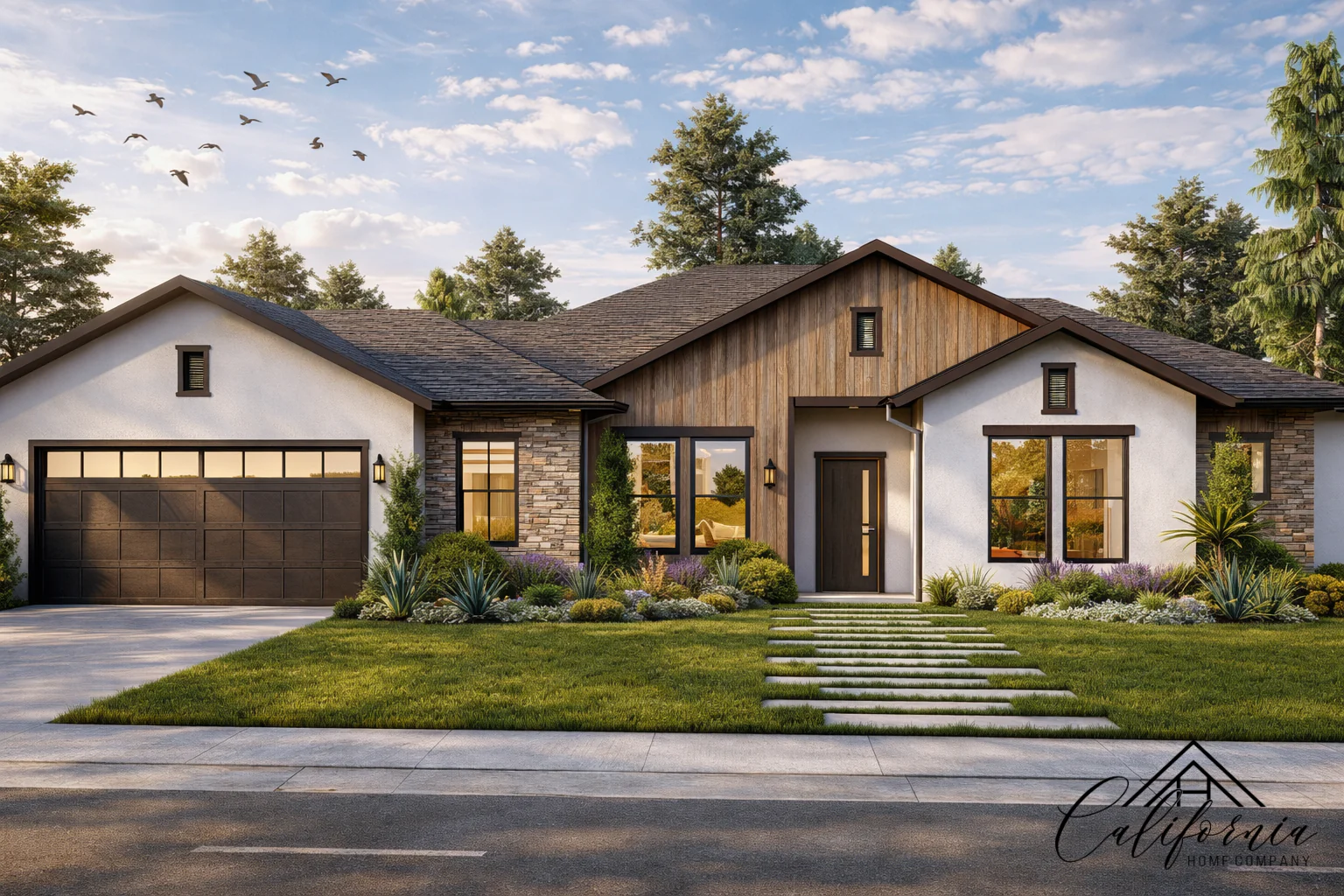 Beautiful and thoughtfully crafted, this 4-bedroom, 3-bathroom residence is nestled in a peaceful, green enclave—offering a quiet retreat without sacrificing modern comforts. With a spacious living area of 2,788 sq ft on a generous 42,974 sq ft lot, and a 2-car garage, the home effortlessly combines function, elegance, and nature. Designed with both style and safety in mind, the home features exterior walls made of fire-resistant materials, ember-protected vents, and tempered-glass windows—meeting the highest standards for durability and protection. The soft, earthy textures of the facade, paired with clean architectural lines and dark-framed windows, create a timeless, elevated look. Inside, expansive windows and an open floor plan flood the interiors with natural light, bringing the surrounding landscape indoors. Whether gathering with family or enjoying a quiet moment, every space feels warm, balanced, and connected to nature. This is a home built for lasting comfort—where refined design meets peace of mind.